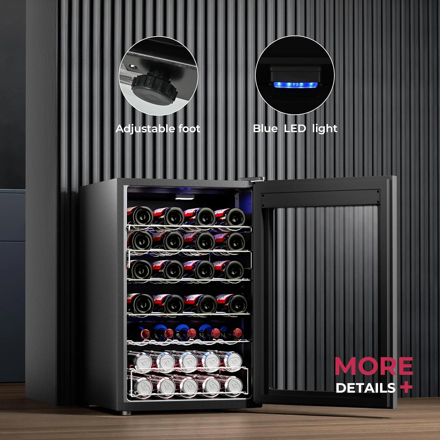 - 【Precise Temperature Control】 Our beverage cooler is designed with a smart touch panel that is more in line with modern daily life. the panel contains temperature adjustment buttons and LED switches. you can precisely adjust every 1°F by tapping on the mini refrigerator screen. temperature control range: 32-61°F