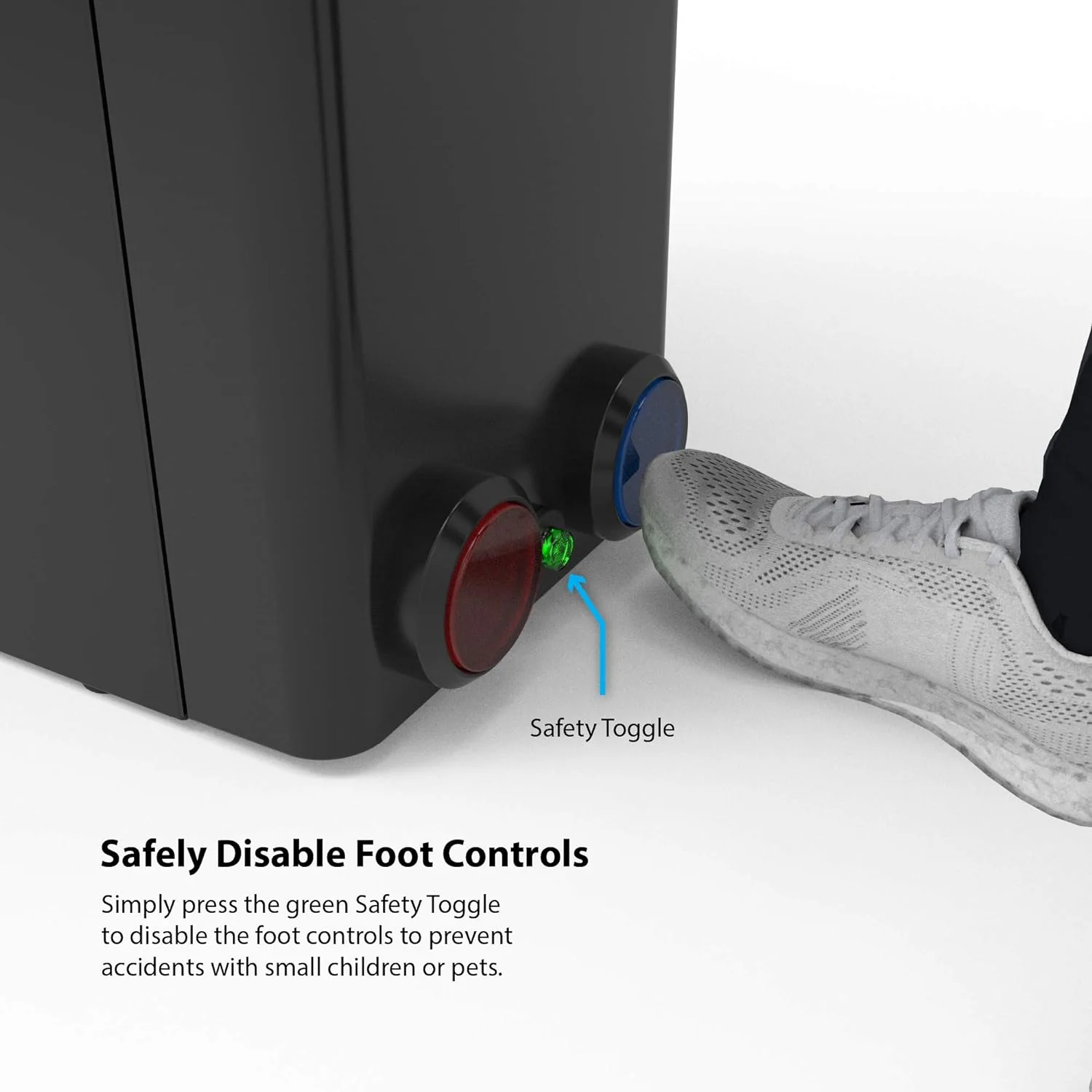 - TOUCHLESS: The Water Cooler features mechanical control paddles for both cold and hot temperature modes (with child safety lock). encouraging the user to dispense water by pushing the lever with a cup and avoid using hands to dispense water.