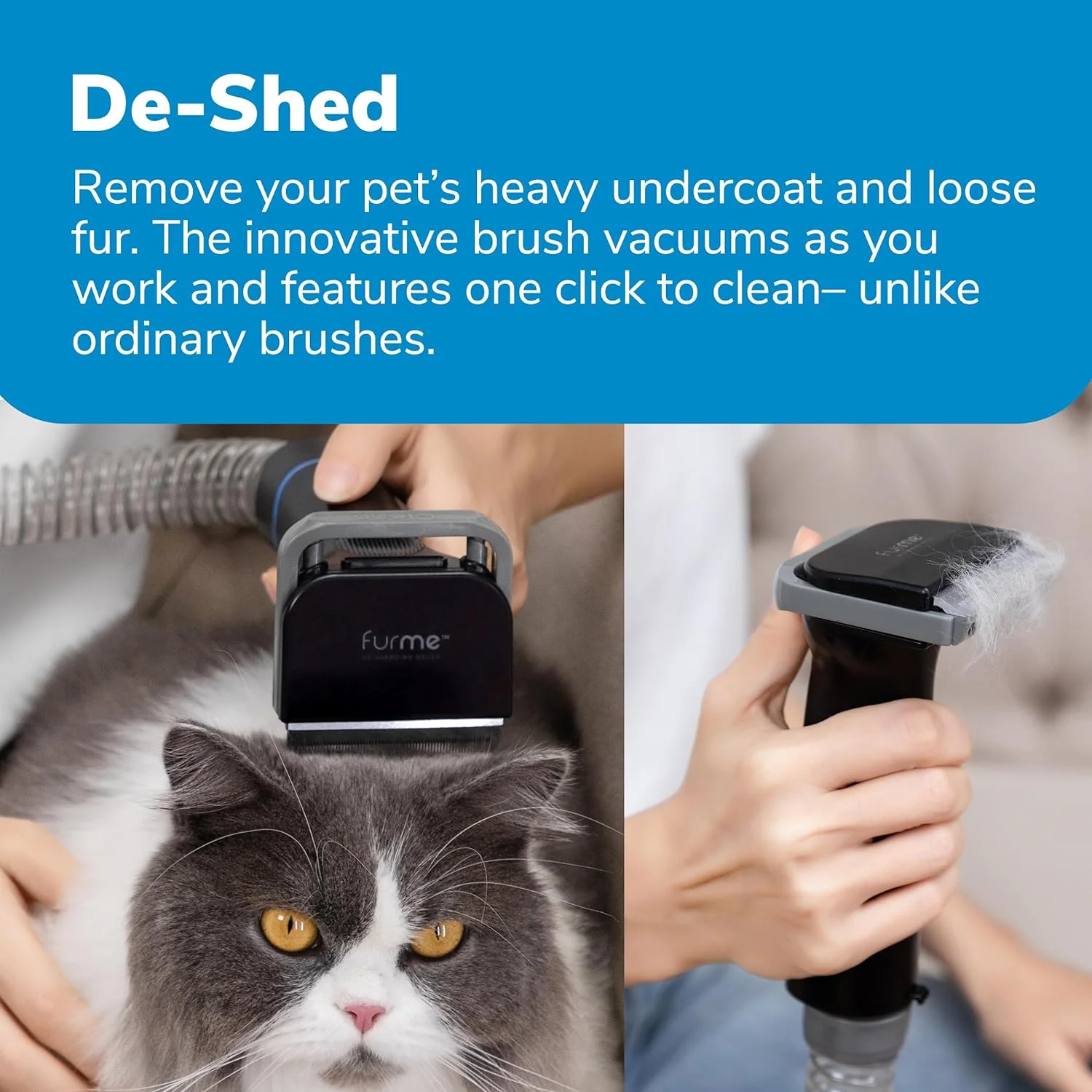 - What's Included: This deluxe grooming kit includes a Professional PLUS furMe Vacuum. Grooming Brush. De-Shedding Brush. AirClipper and Suction Extender with 5 different length guards. Crevice Cleaning Tool. Cleaning Brush. and Tool Organizer Caddy