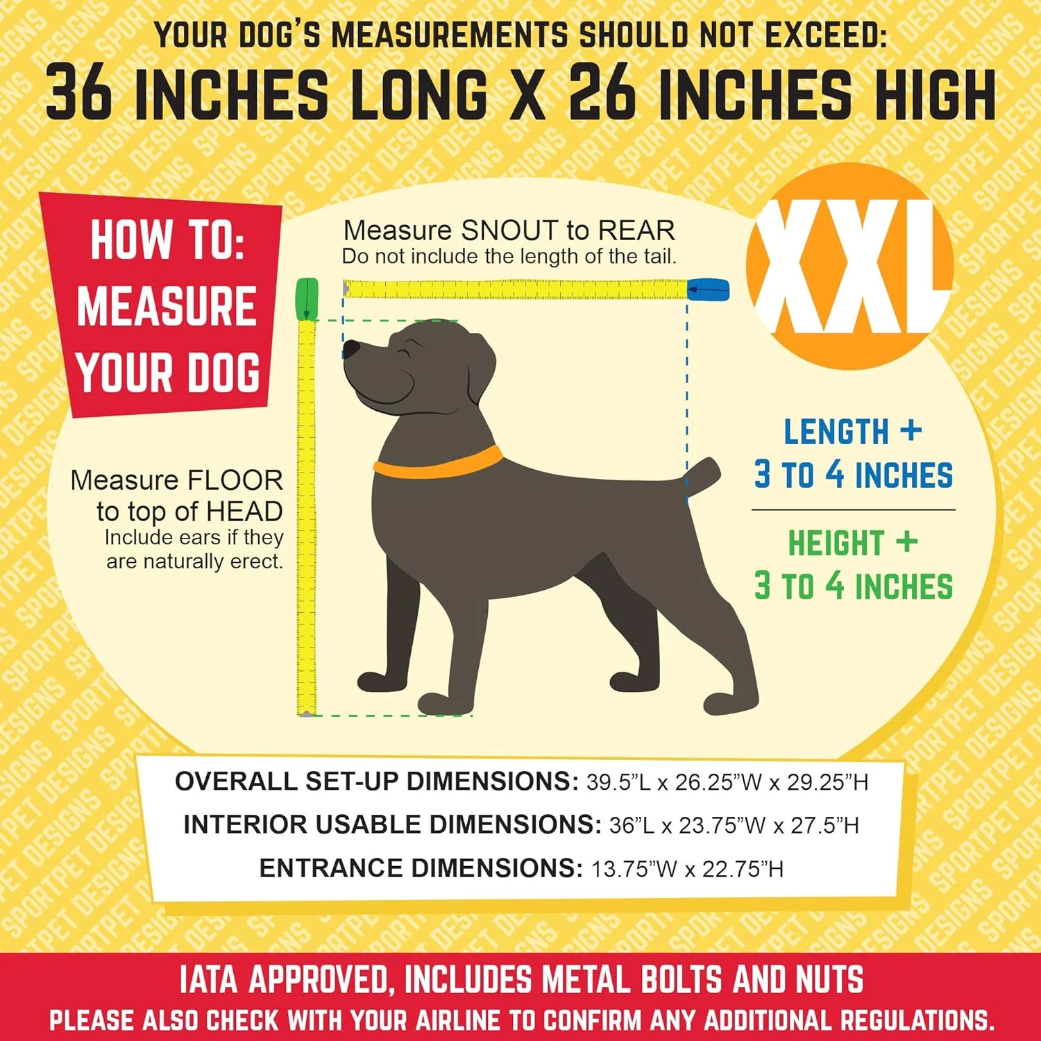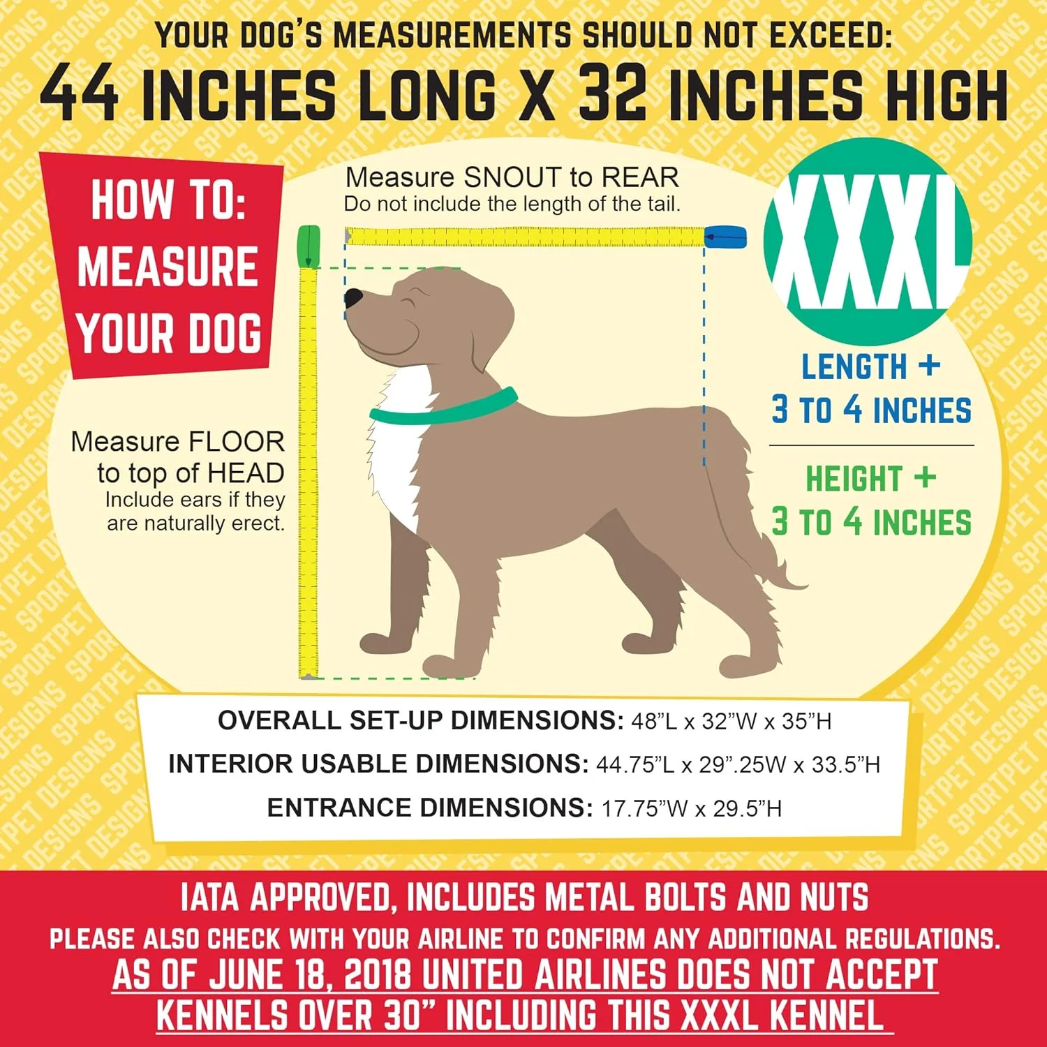- Your dog's measurements should be under 44” L x 33” H for 3X-Large kennel