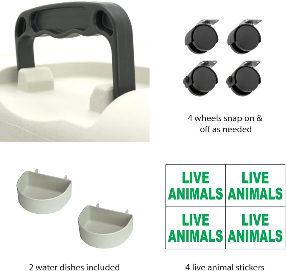 - Iata airline approved. 2 dishes. 4 live animal stickers. metal bolts and nuts included