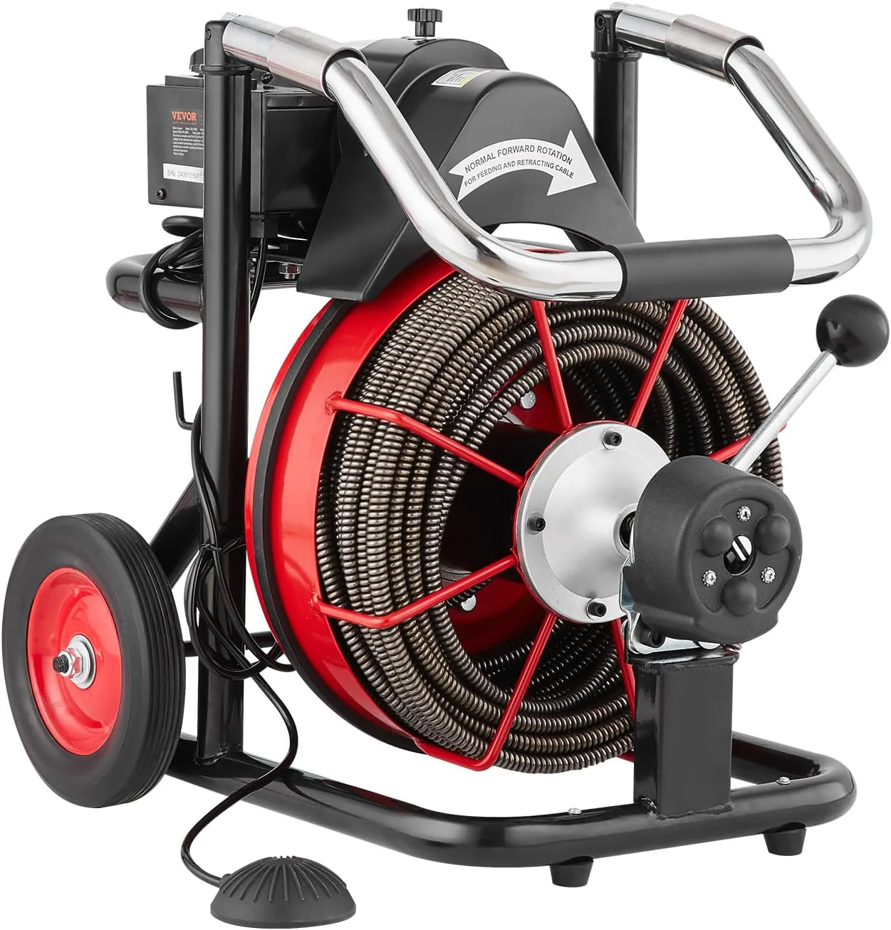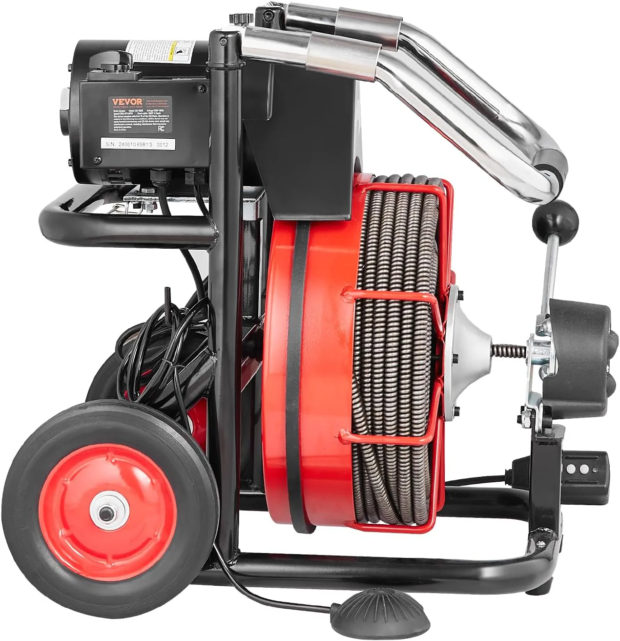 • Attack Stubborn Clogs: VEVOR drain cleaner machine features an automatic feed control system to power the cable in and out of drainage pipes. Enhanced with forward/reverse control and air-activated foot switch. managing the cable becomes more effortless