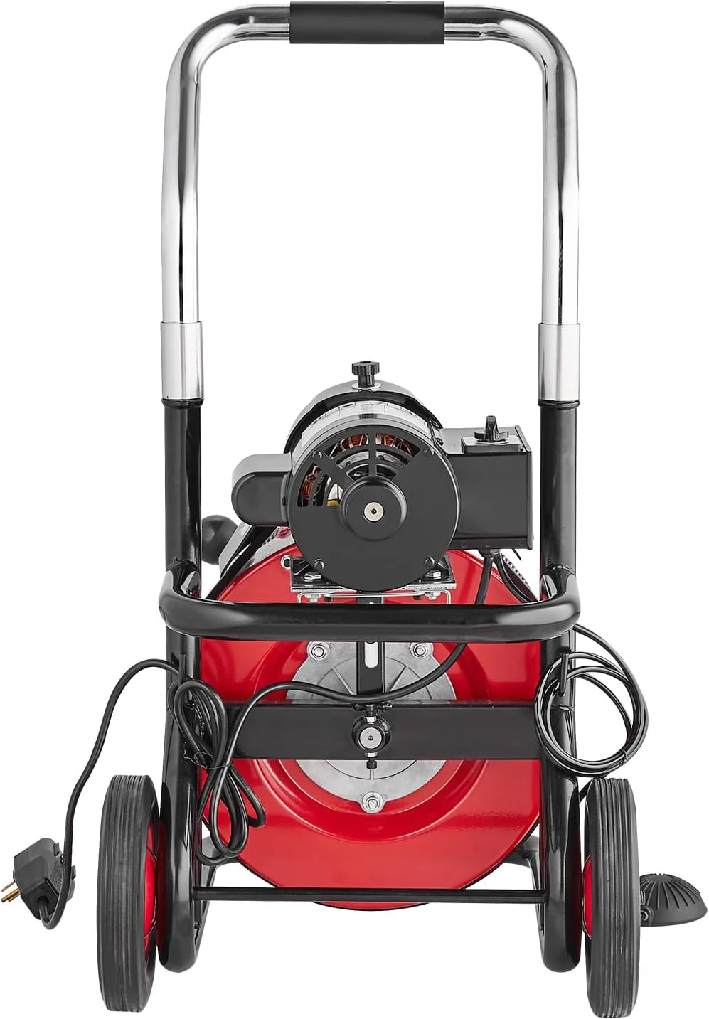 • Portable and Space-Saving: Take it anywhere. store it with ease! This drain cleaning machine is equipped with 8-in wheels. enabling effortless movement. The foldable handle provides a comfortable grip. while making it convenient to store when not in use