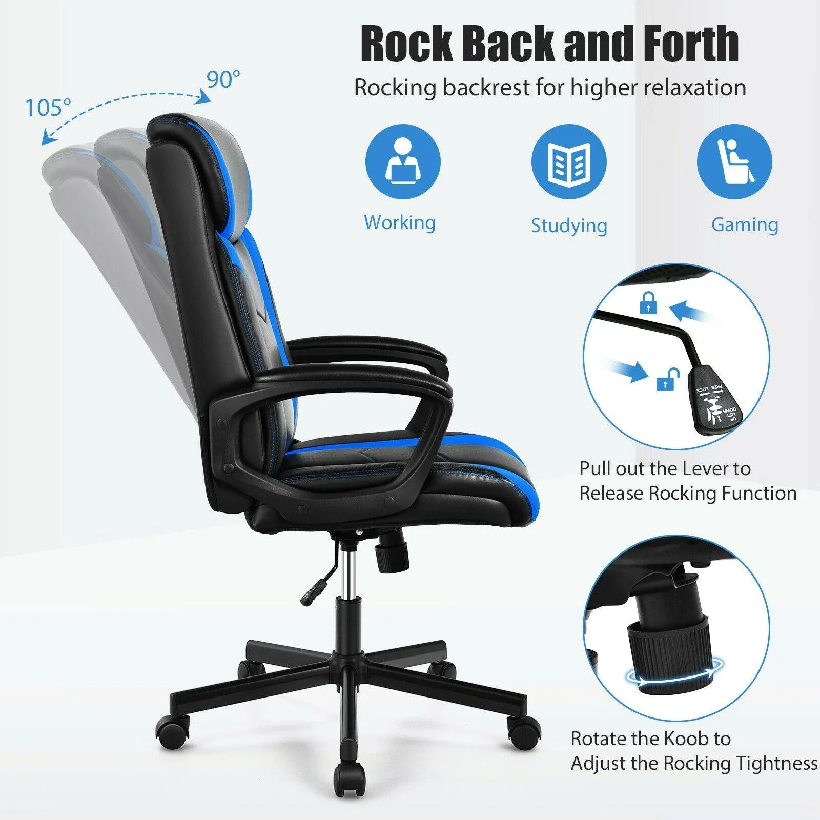 - Fits your body curve with cushioned headrest, ergonomic backrest and cozy armrests