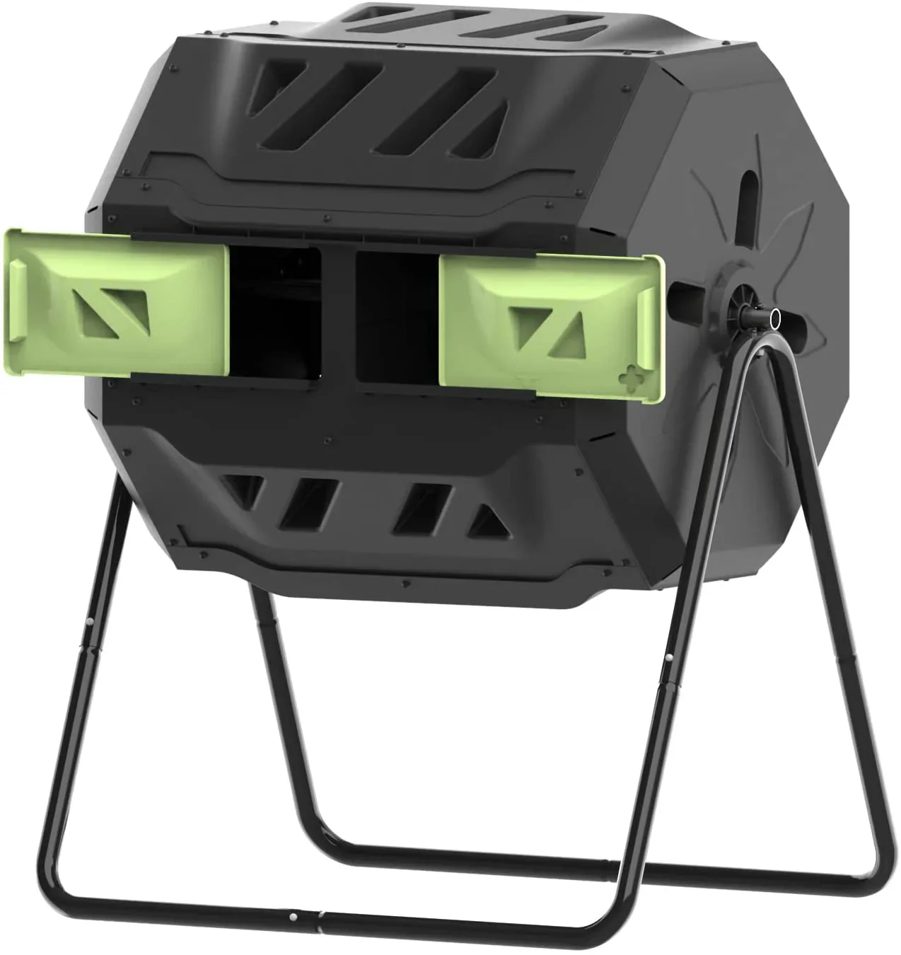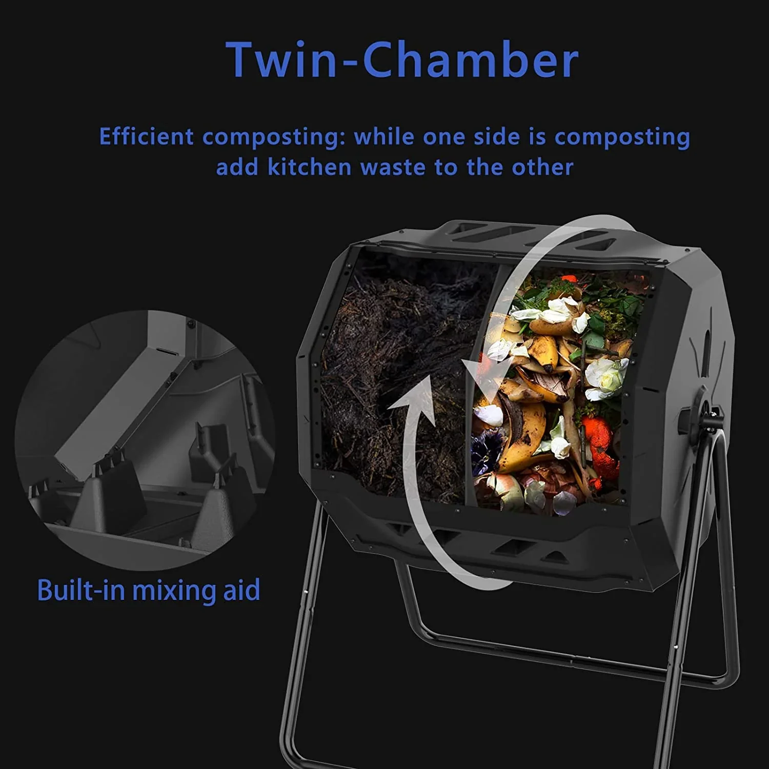 Large Compost Tumbler Bin Dual Compartment Better AirCirculation Efficient Compost BPA Free Sturdy Steel Frame 43Gallon (2 21.5Gal) Blue Door