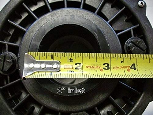 Details: Ships with 2″ Unions. PLEASE READ: There is no industry standard for Unions. The various brands have their own unique style, which means you must use the unions provided with our spa pump. This will most likely involve cutting off your old unions and installing the new ones shipped with the spa pump. If your heater is directly coupled to the spa wet end, then our pump will probably not work as the union will most likely be different. Be sure to look at the motor voltage, not the voltage supplied to the spa to determine the correct pump voltage. When removing power cord from existing pump we recommend you mark your wires for”common”,”High speed”,”low speed”. The pump does not come with a power cord. The connection diagram for the new pump is located on the motor name plate. The wet ends can be rotated by simply loosening the motor thru bolts and turning the pump head. Not Self Priming-Water must be above pump head in order to operate properly. 2″ refers to the size of your PVC plumbing supply lines. It has nothing to do with the size of the union nuts, the size of the threads on the wet end or the inside diamater of the inlet/outlet. The PVC pipe slides into the union and is glued with PVC cement. 2″ plumbing means you have 2″ schedule 40 PVC supply lines (2″ I.D.; 2 3/8″ OD on the line) circumference = 8″ (wrap a tape measure around the pipe). If you are unsure if this pump will work for you, please call us, we can help assist you in your selection. If you only require a one speed pump, this pump will work fine. Simply just use the high speed connection. 2″ inlet & outlet measures 3″ O.D. on the threads.