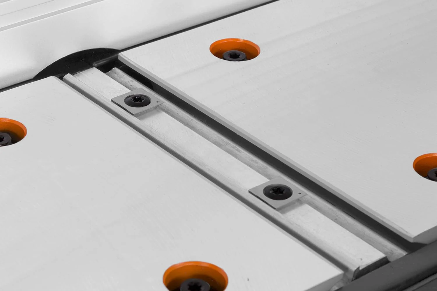 - Adjustable 19-3/4 by 4-1/4-inch fence bevels up to 45 degrees