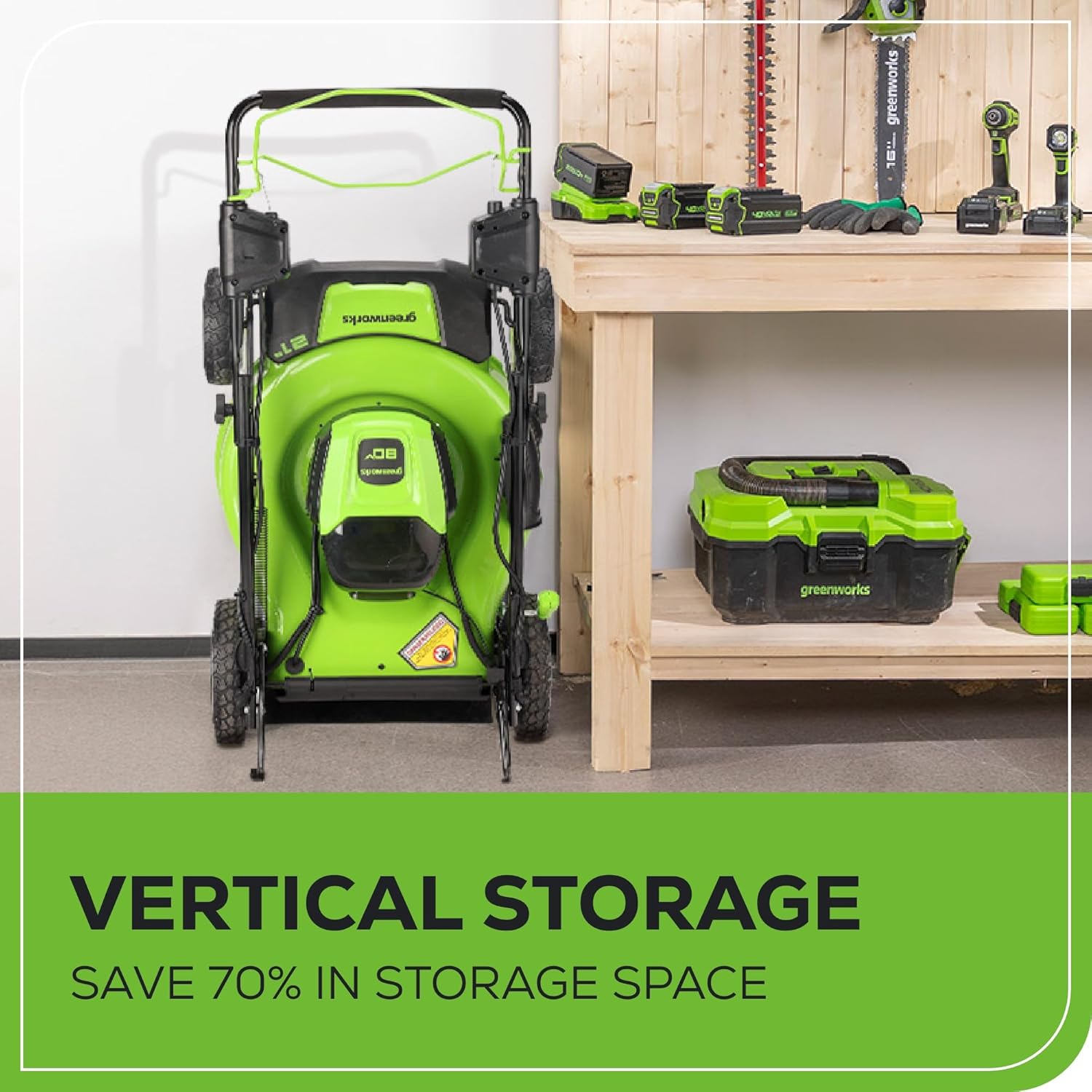 • Greenworks 80V 21" Brushless Cordless (Self-Propelled) Lawn Mower (75+ Compatible Tools), 4.0Ah Battery and 60 Minute Rapid Charger Included