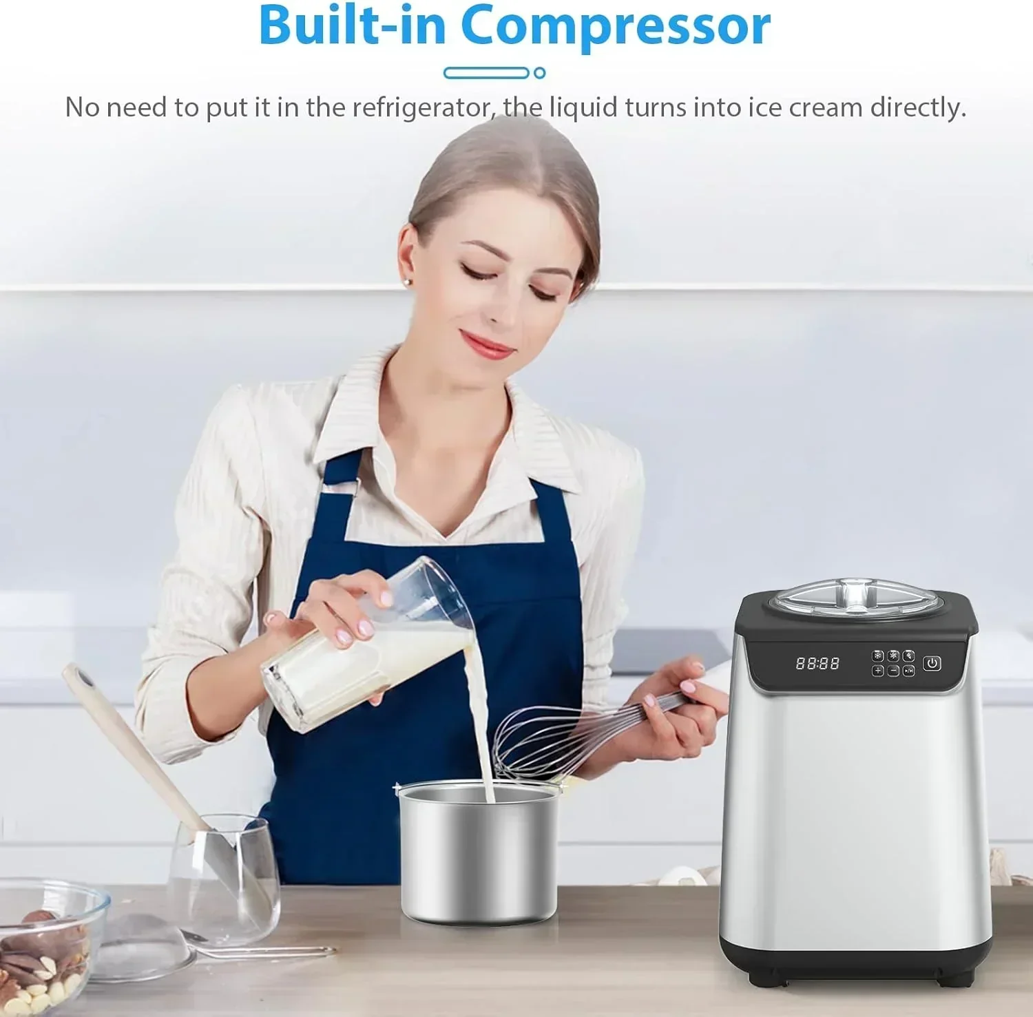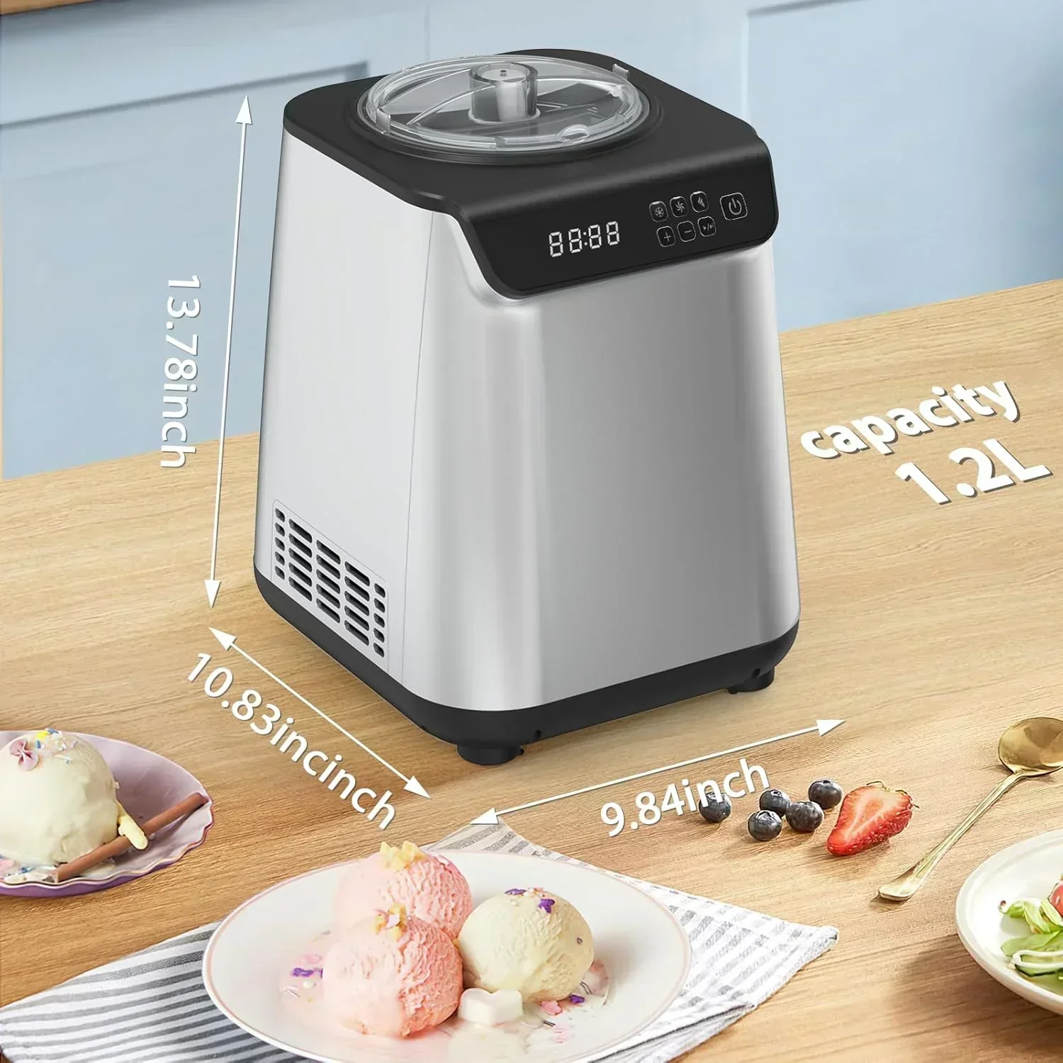 Star Upright Ice Cream Maker, Homemade Ice Cream Maker for Kids, Stainless Steel Machine with LED Display, 3 Modes for Gelato, Frozen Yogurt, Sorbet, 1.2L