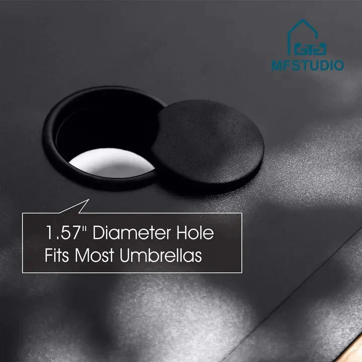 - 【Dimensions】Table size: 60 inches long x 37.4 inches wide x 28 inches high (about 152.4 cm long x 94.1 cm wide x 71.1 cm high. umbrella hole diameter: 18.5 inches. weight per chair: 30 lbs (about 13.6 kg) . Load bearing: 136.1 kg. Umbrella size: L 13 inches x 6.5 inches x 7.8 inches (about 33.8 cm x 17.8 cm) Metal rod (diameter 1.5 inches (about 3.8 cm)