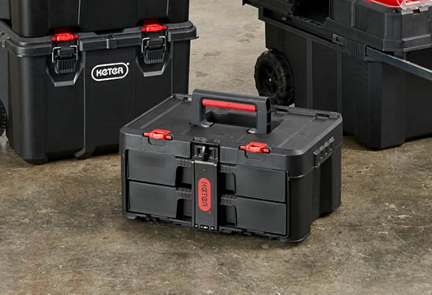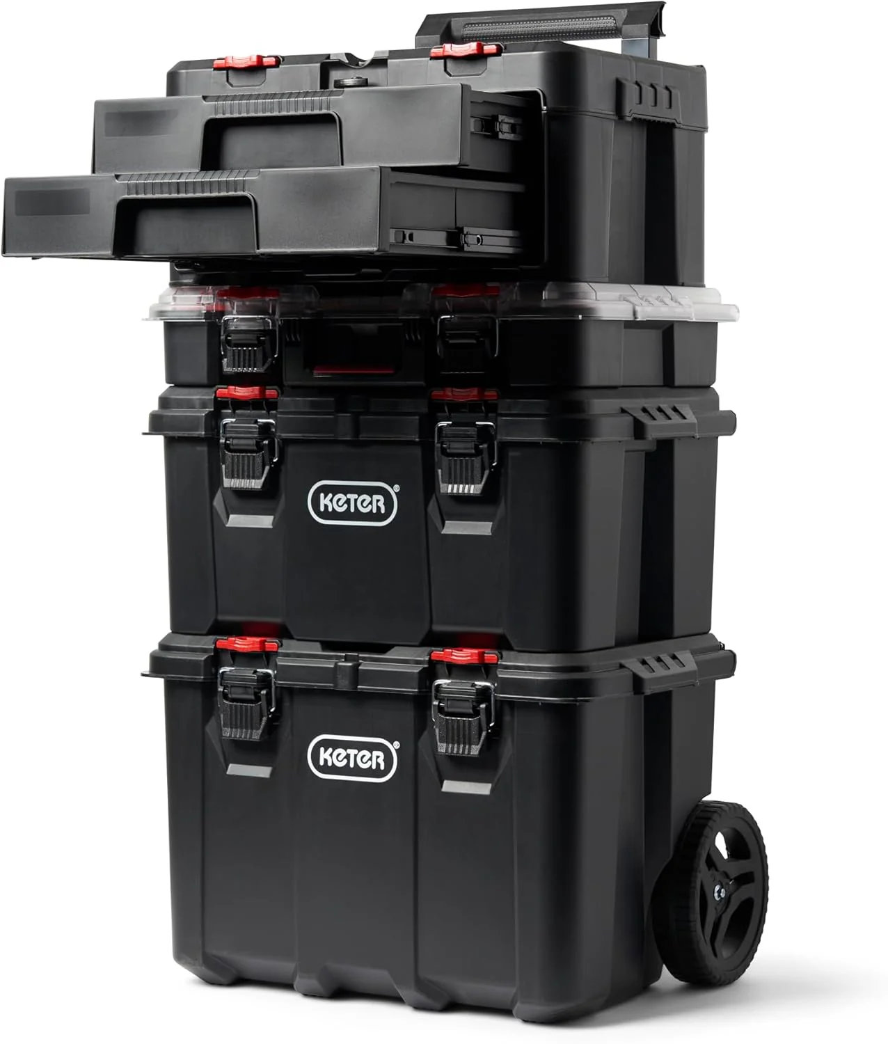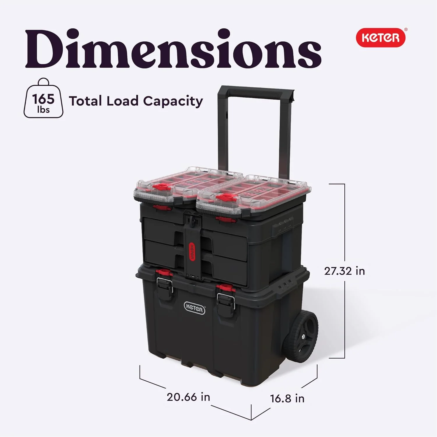 • Modular Tools Organizer for Garage Storage and DIY, 3 Piece Resin Rolling Tool Box System for Small Parts