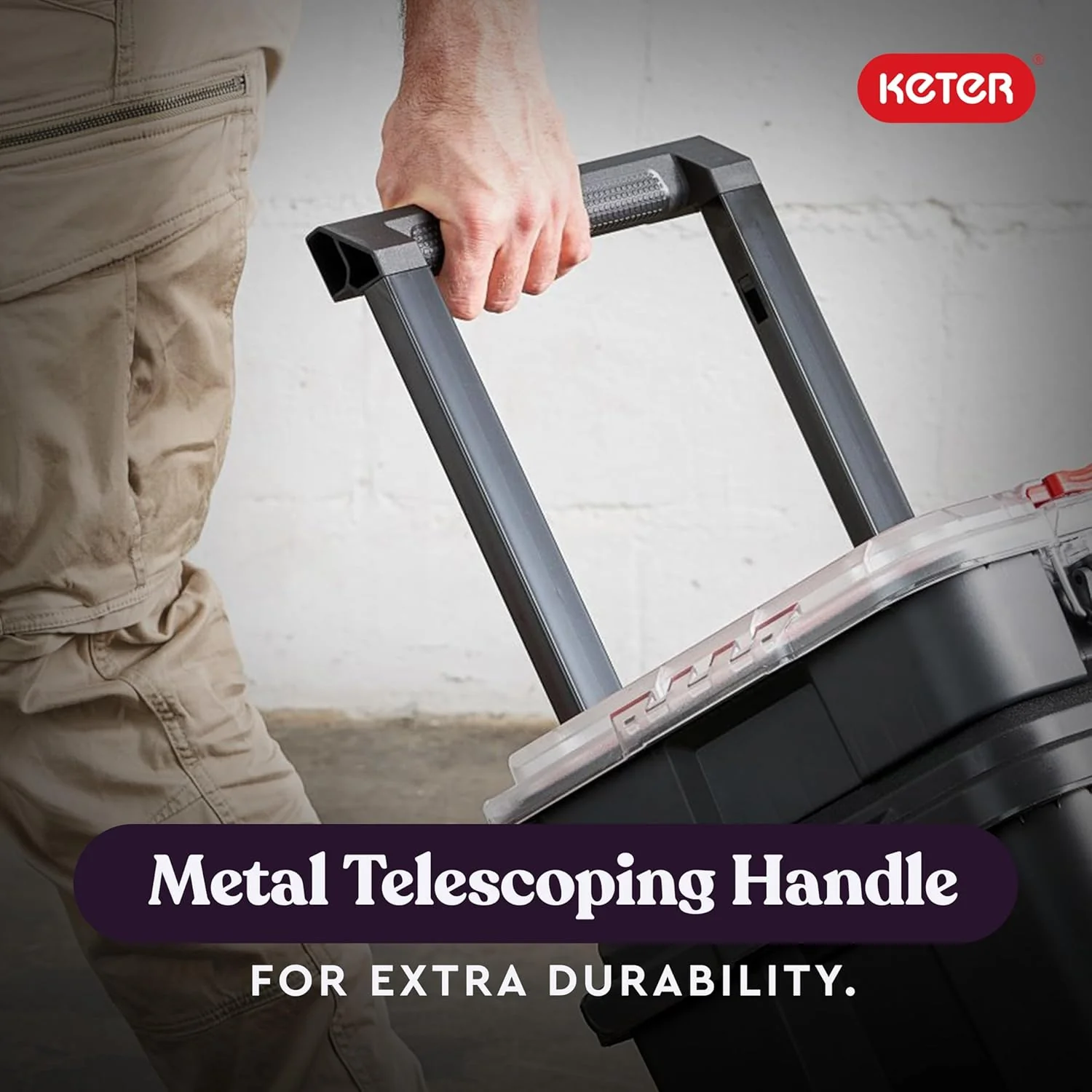 • Metal telescopic handle with 7�� durable wheels and side grips for maximum mobility to your next project or jobsite