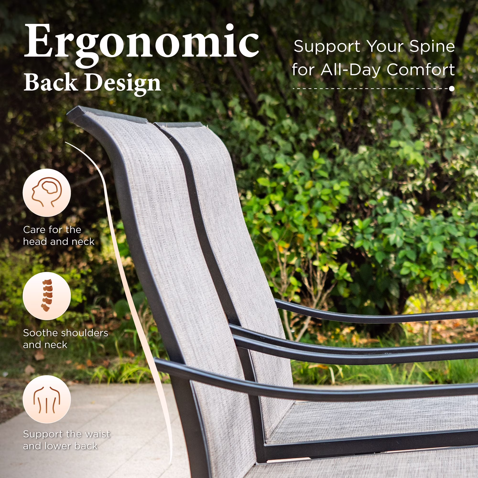 • High-Performance Textilene Fabric: The chairs are made from anti-UV, breathable, quick-drying Textilene fabric that is easy to maintain.
