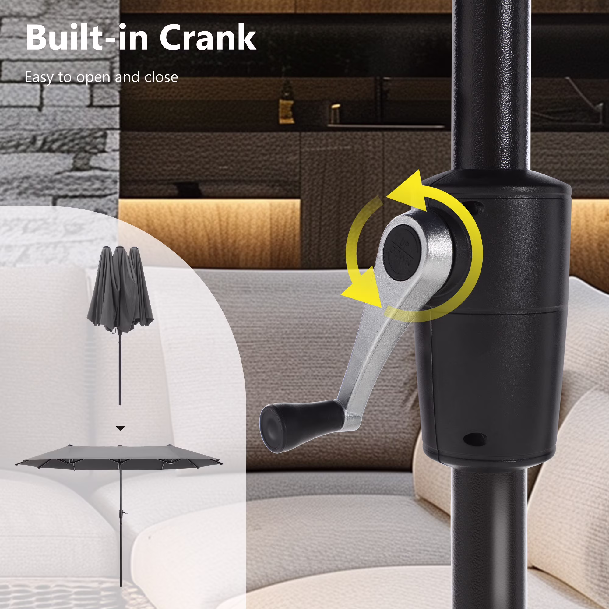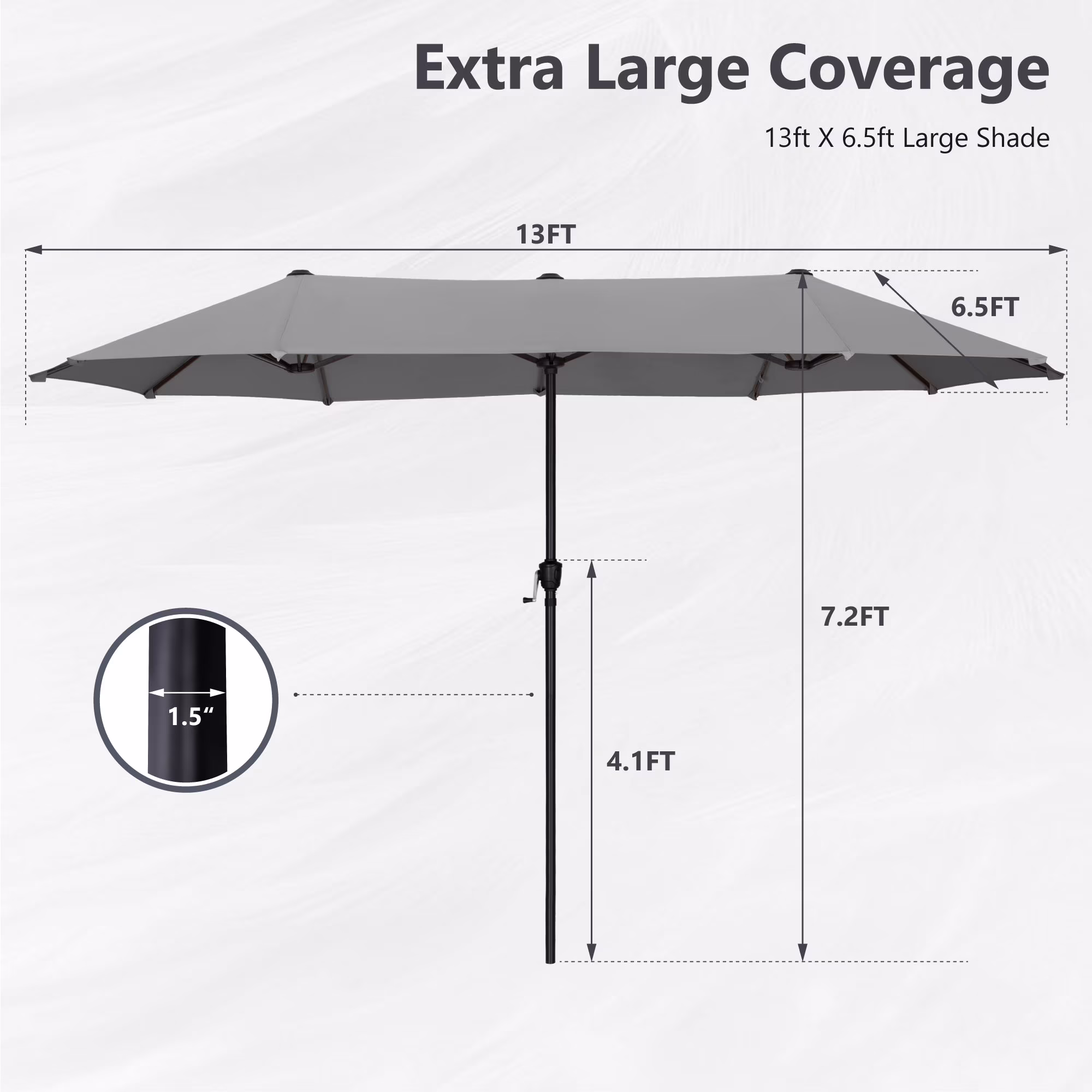 • 13ft Patio Umbrella: This umbrella features 12 reinforced ribs, a robust 1.5" diameter pole, and a durable 180G polyester canopy. It provides ample shade and 99% UV protection, keeping your family and friends safe from harmful UV rays.
