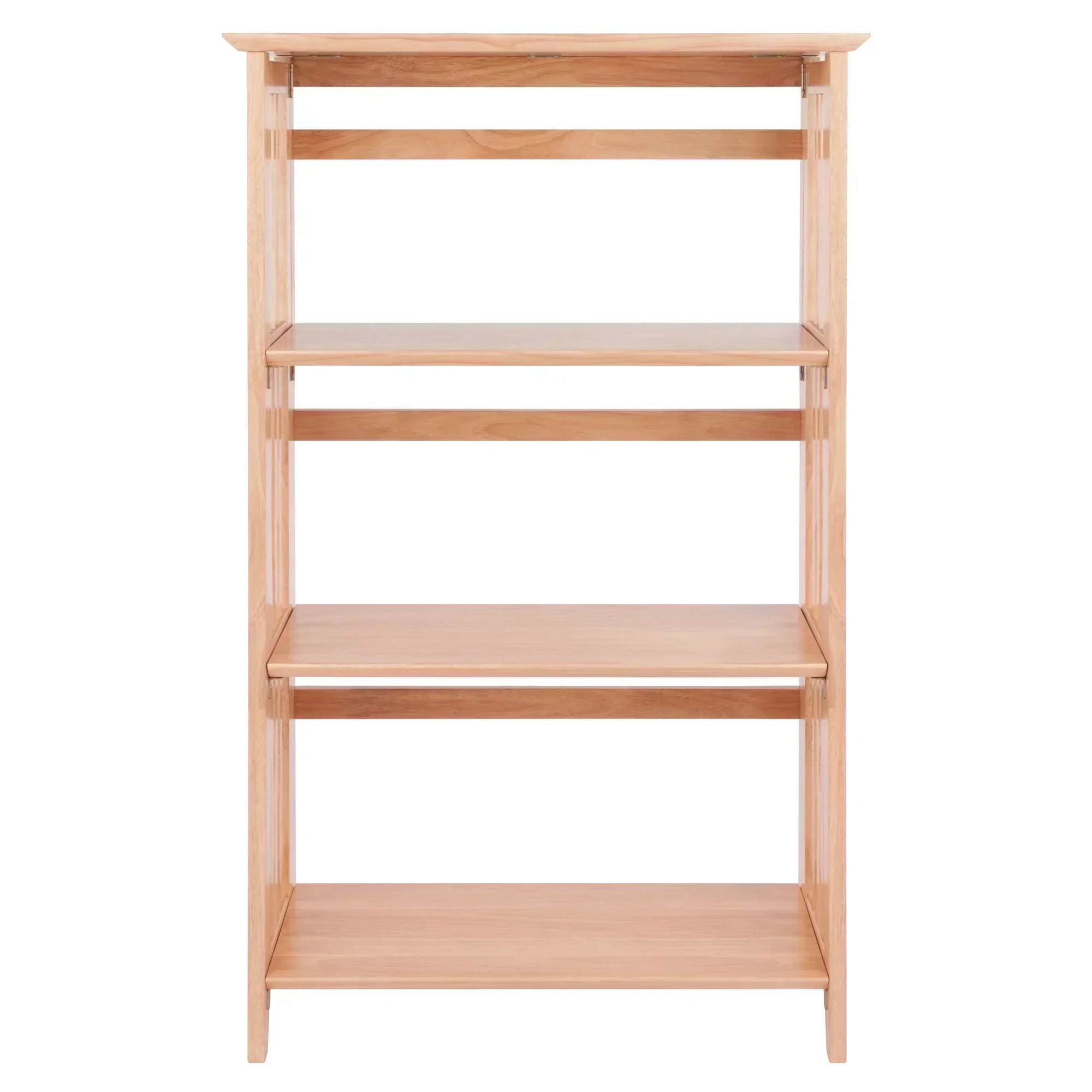 The Foldable Shelf is great for the space conscious user. Clean, straightforward lines combined with a natural wood finish make the 3 section storage shelf excellent for any room in the house. Made of solid wood, this shelf has Mission-style side panels and sturdy legs with three rear crossbars to provide a durable and secure base. When not in use, the shelf can be folded up and conveniently stored away, making it perfect for apartment living or small living spaces. Simply fold up the three shelves, bring in the side panels and the top panel folds down. The shelf measures 26″W x 12.3″ when expanded and 25.9”W x 3.4”D when folded. Each shelf is 10.6″D x 22.8″W x 12″H with a static weight of 50 lbs per shelf. Shipped in one box with hardware needed for assembly.