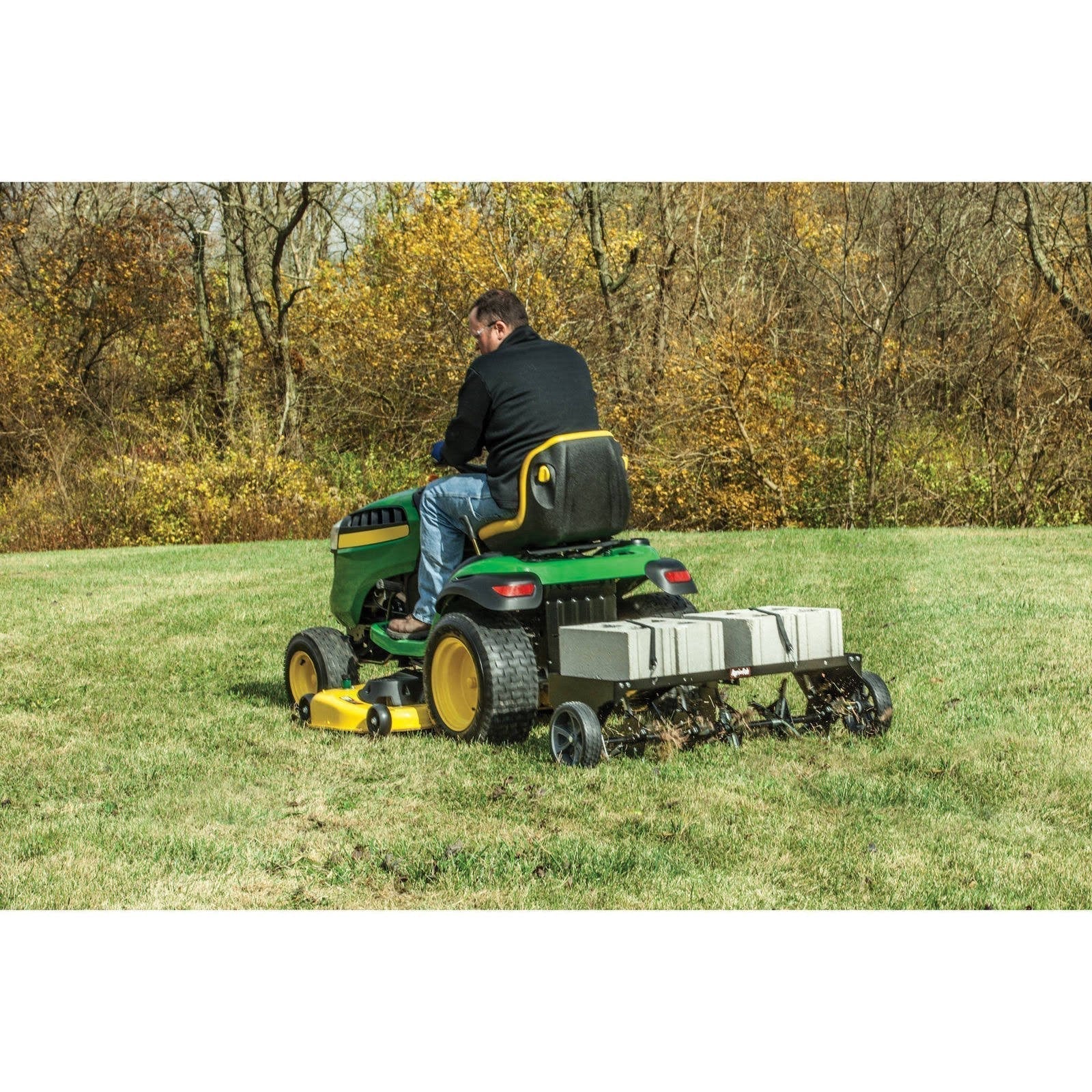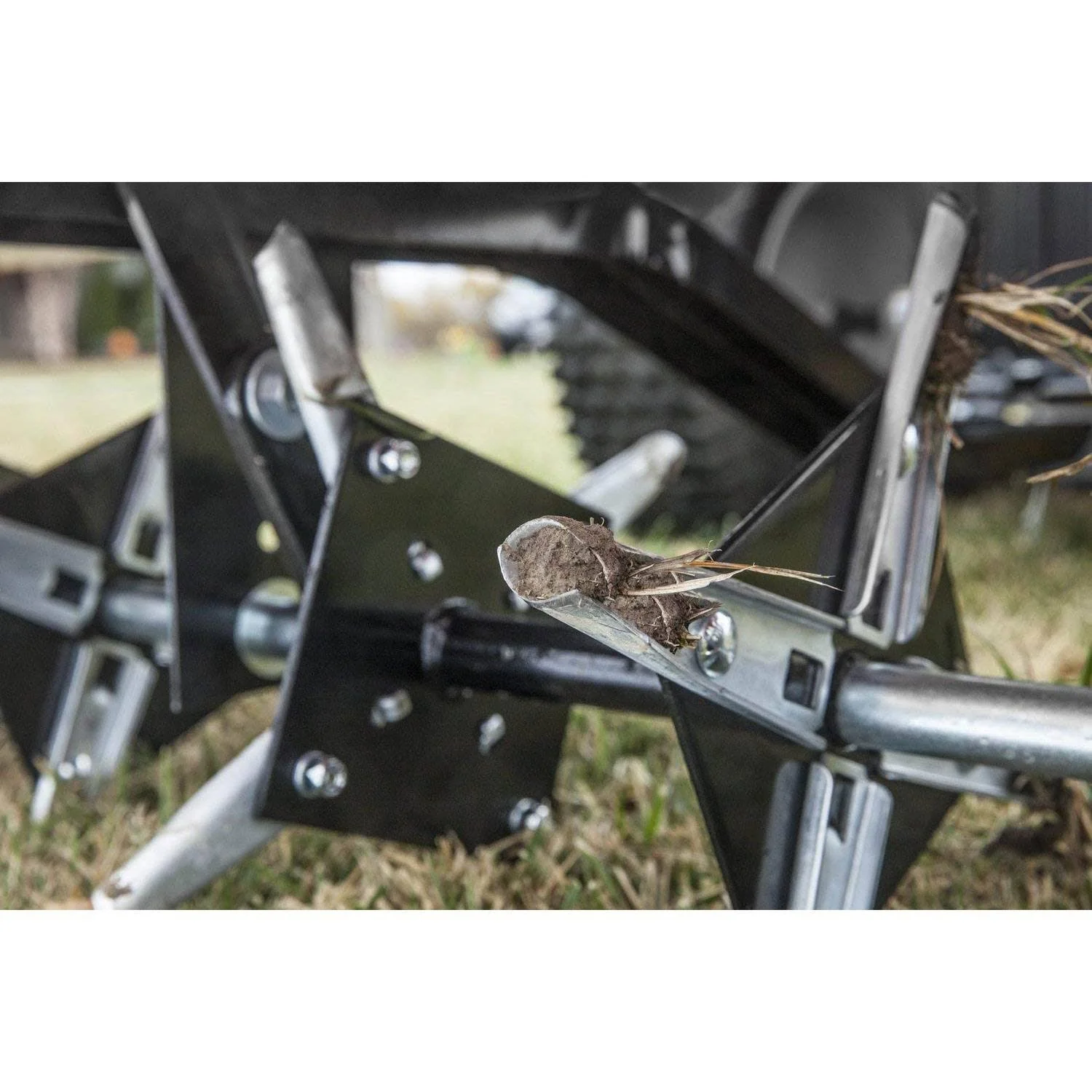 Your lawn has been asleep for far too long. It's time to wake it up for the growing season with the Agri-fab 45-0518 40" Plug Aerator. Let's face it, we all want to be the house with the green, luxurious lawn and the first step to getting that is the aeration process. Equipped with 24 galvanized knives and a pull-behind design, this aerator is the perfect lawn-boosting accessory. It features a pair of flat free tires and easy rolls behind your riding lawn mower or ATV. Simple adjust the transport handle and you can dictate the raising/lowering of the knives. At a depth of up to 3 inches, this aerator will give your lawn the new life you crave. Stop hitting the snooze button and wake up your lawn for the grow season with this aerator from Agri-fab.