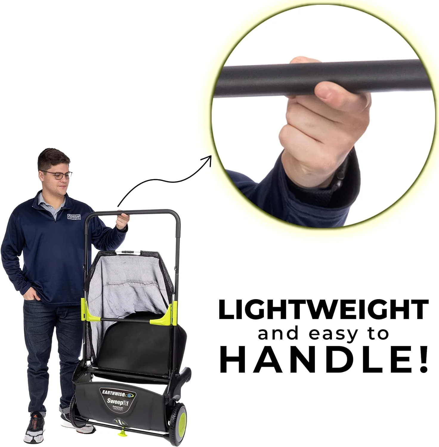 - Ultra lightweight and easy to use. 21" brush width yard sweeper. Leaf Sweeper with spinning rake-like action with 70% pick-up on the first pass; multiple passes required to pick up 100% of the leaves.