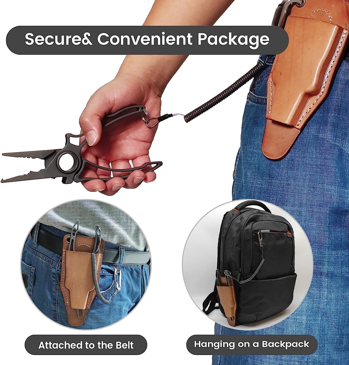 - 【More Convenient Operation】Titanium pliers set is equipped with a pants clip holster placed around the waist. lanyard and titanium hiking buckle ring. making it always easy to access and can prevent accidental loss. Combined with the hollow design. hanging on the top of the pliers handle is also easy to access common fishing accessories