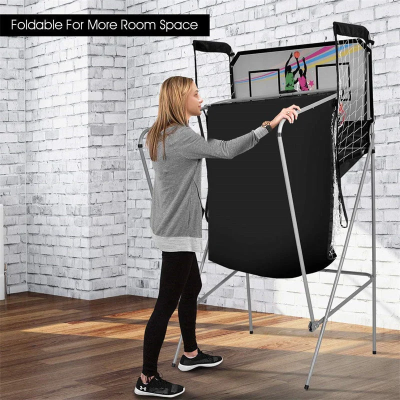 • Foldable Indoor Basketball Arcade Game with 4 Balls Electronic Double Shot LED Scoring System for Kids Adults