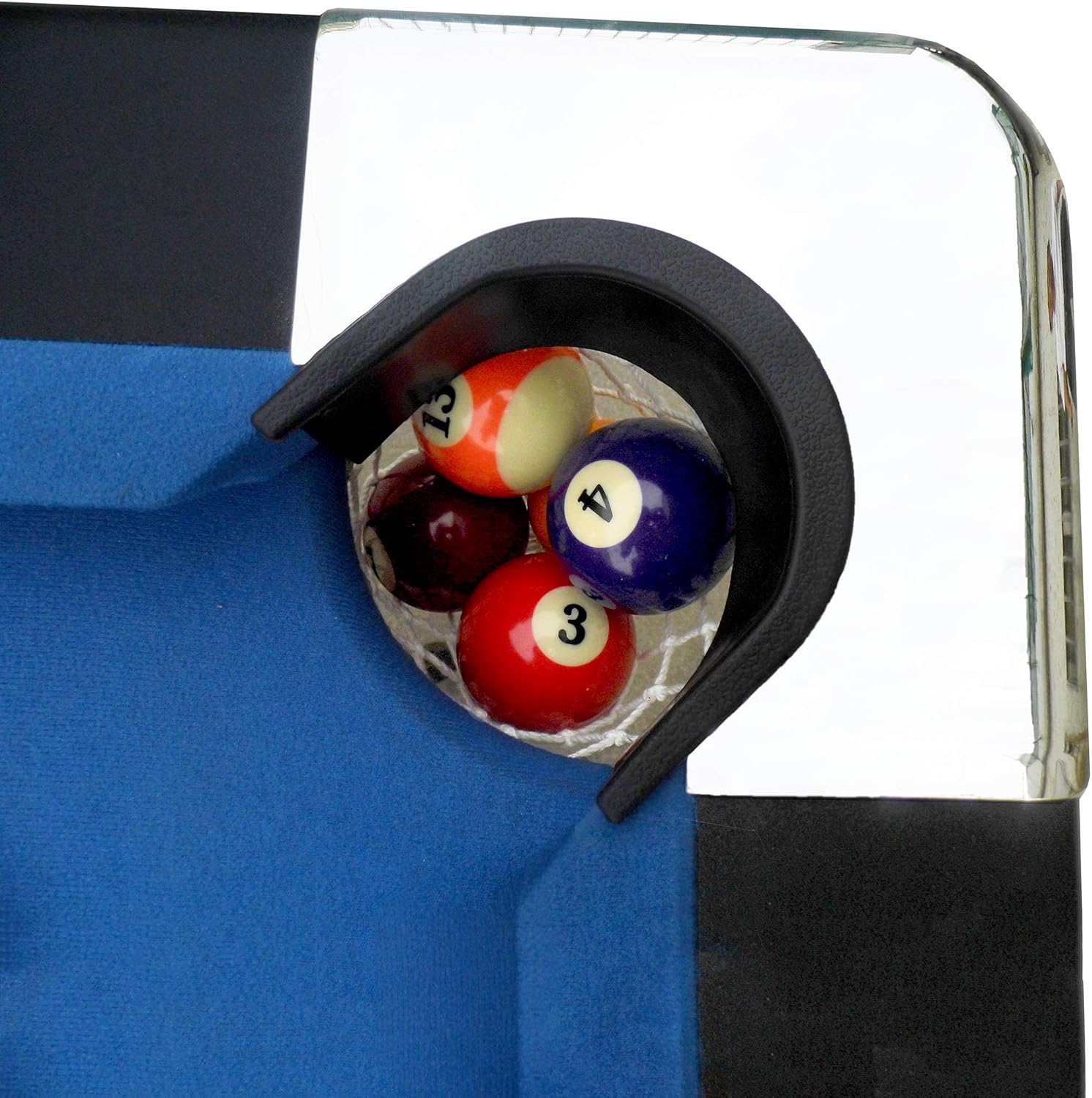 • PREMIUM PLAY SURFACE - The playfield is covered with a high-quality blend of wool and polyester cloth. ensuring a smooth. consistent roll. L-shaped cushions provide precise and responsive gameplay for an authentic pool experience.