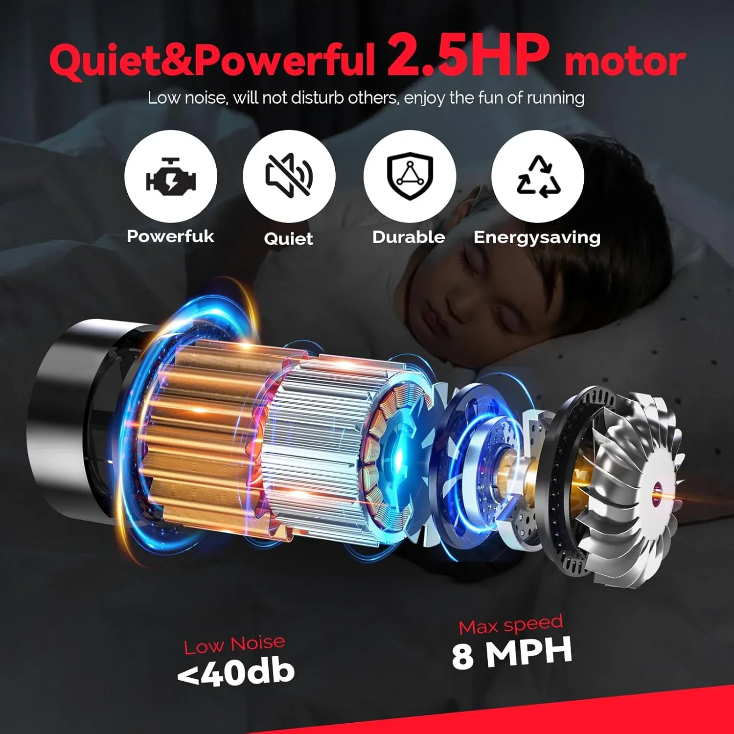 - Powerful Yet Quiet Performance: With a 2.5HP servo motor, this treadmill delivers speeds from 0.2 to 3.8 mph and supports up to 350 pounds, while maintaining a near-silent operation below 45 dB for a smooth, undisturbed workout experience.