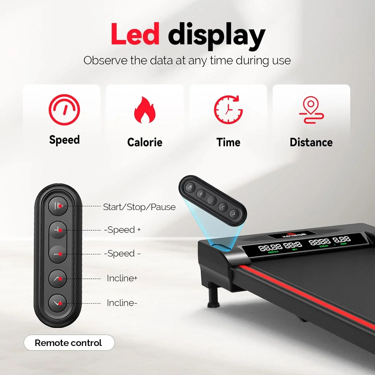 - Intuitive Fitness Tracking: The LED display and Fitness app provide real-time monitoring of essential metrics like calories burned, speed, time, and distance, enabling you to customize and enhance your home workout routine.