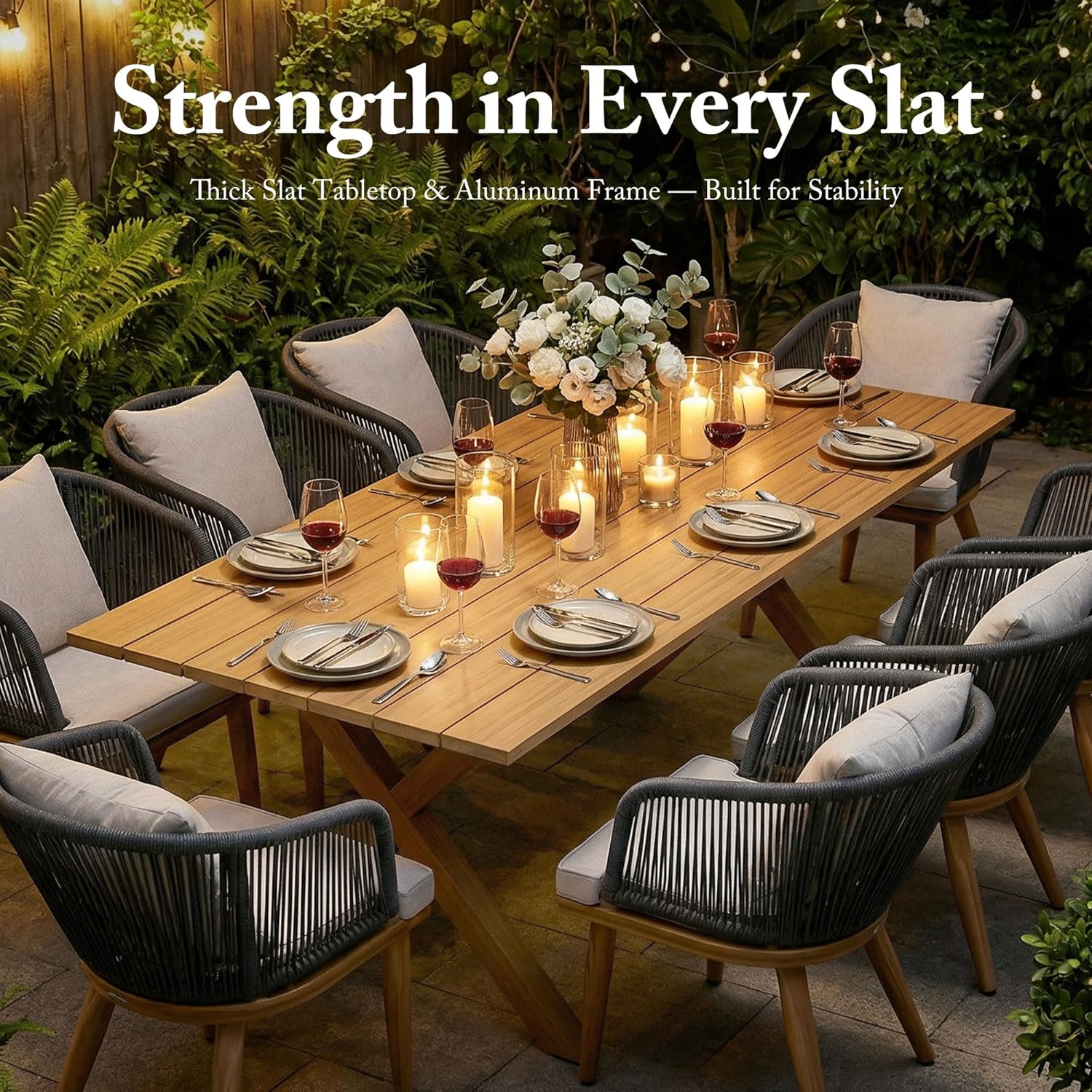 • PURPLE LEAF 11 Pieces Patio Dining Set Wicker Outdoor Furniture Rectangular Table and Chairs Set for Garden Deck Teak-Finish Aluminum Frame Backyard Kitchen Set, Cushions and Pillows Included