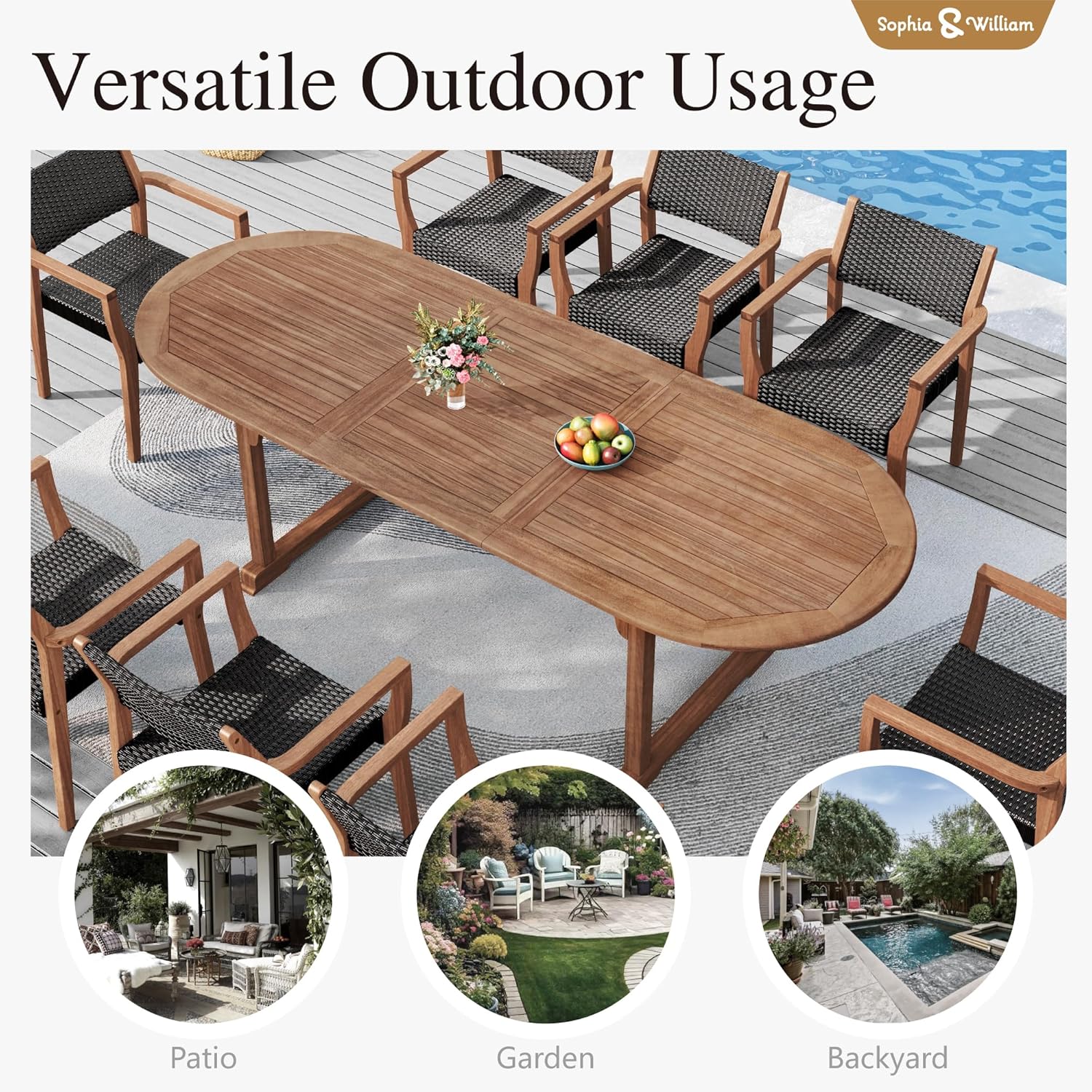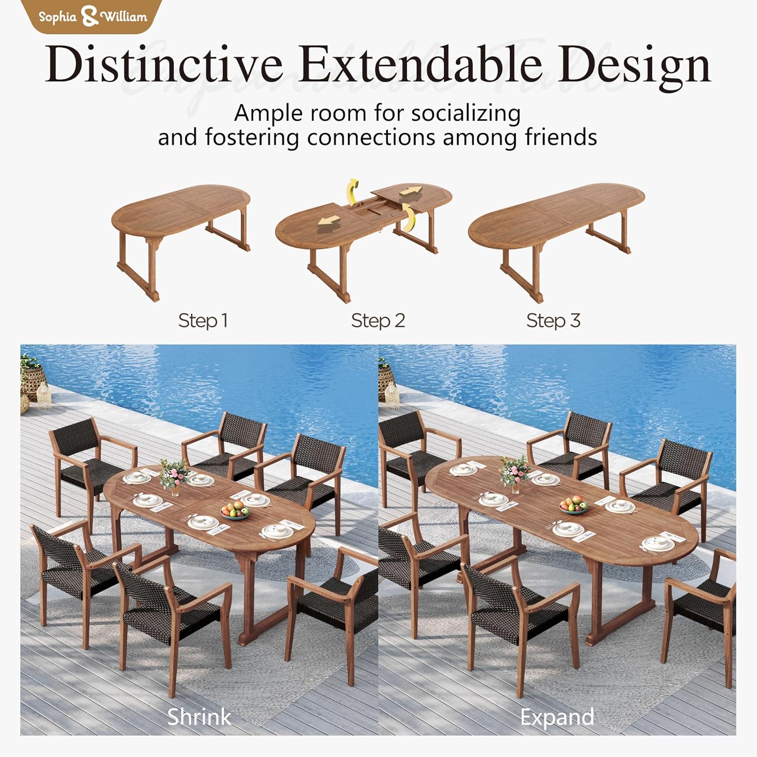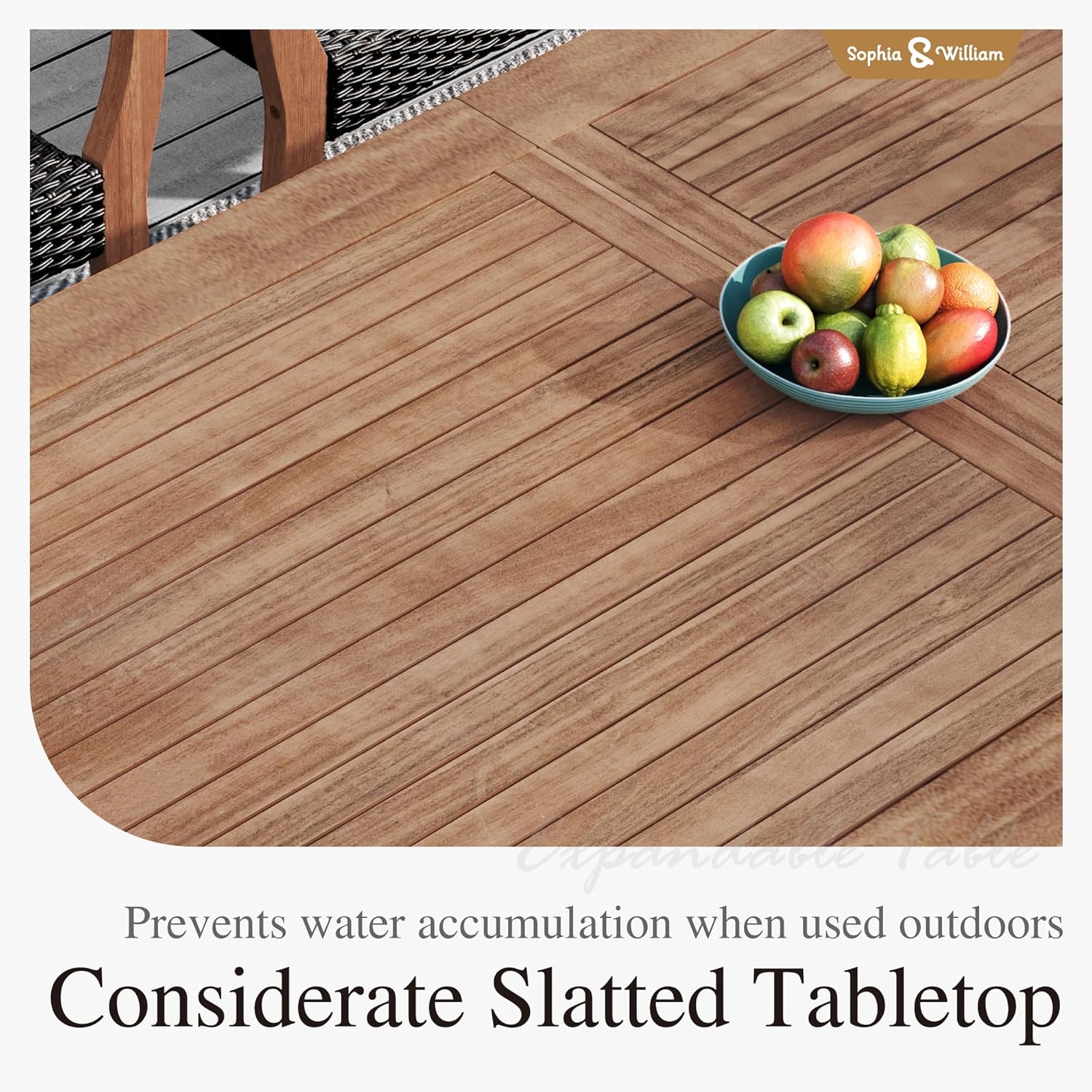 - Expandable Outdoor Table: The wood table can be extended from 71" - 95" according to your needs. Ultra spcacious for dinner of 6-8 people. Thicken supports and legs add stability and firmness to the table. Display dimension: (71"-95")L x 35.4"W x 30.5"H