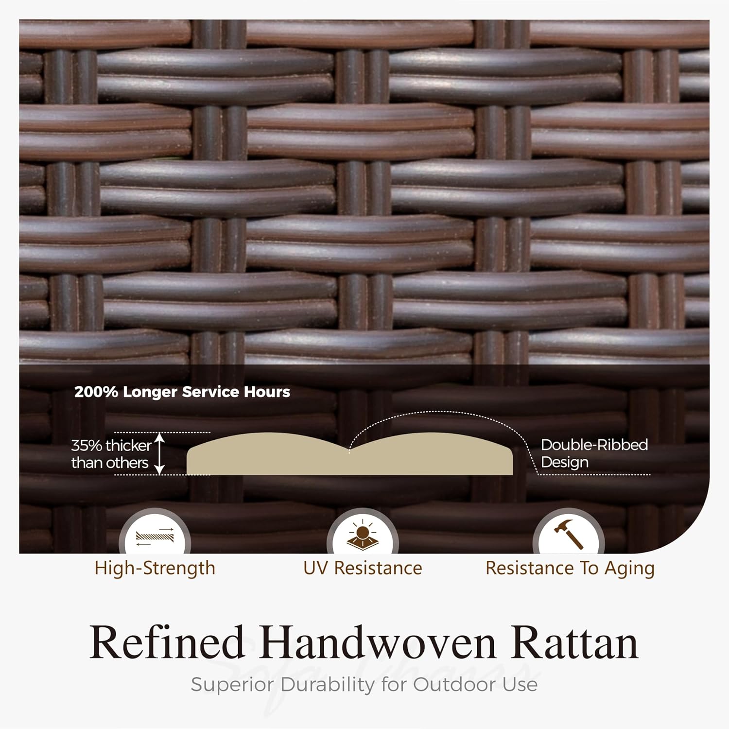 - Comfortable Patio Chairs:Enjoy enhanced comfort from the widened curved seat & raised backrest. Crafted with premium acacia wood, it adds sophistication to your patio, resisting weather, durable, with a smooth finish. Handwoven wicker features double rib design, waterproof, UV-resistant, easy to clean, ultra-durable for outdoor use. Non-slip & soundproof pads ensure peace. Perfect for backyard, garden, patio—where nature meets comfort!