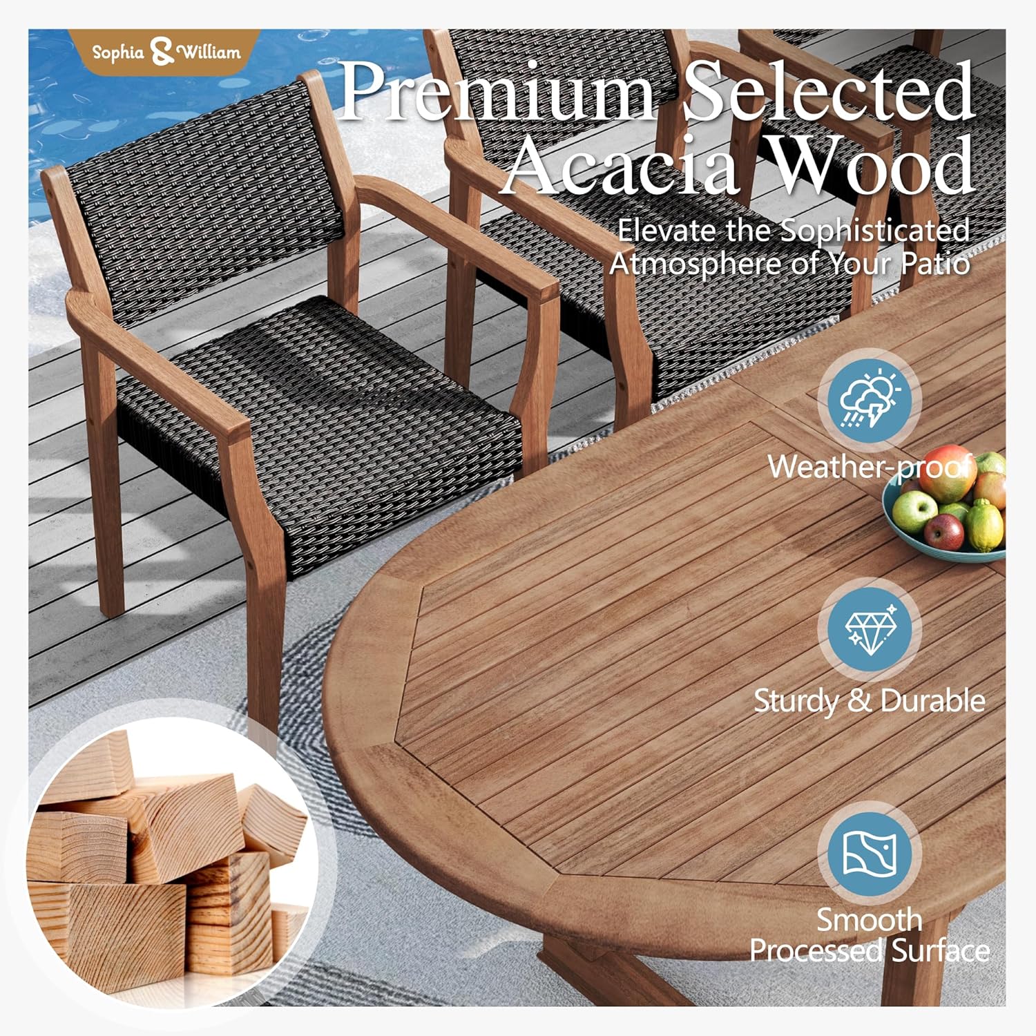 - Premium Outdoor Dining Set: The outdoor table and chairs are made of 100% tough and abrasion-resistant Acacia wood, which is natural, beautiful and environmentally friendly. Good in water resistant performance.The clear and beautiful texture of the cross section adds to its aesthetic appeal