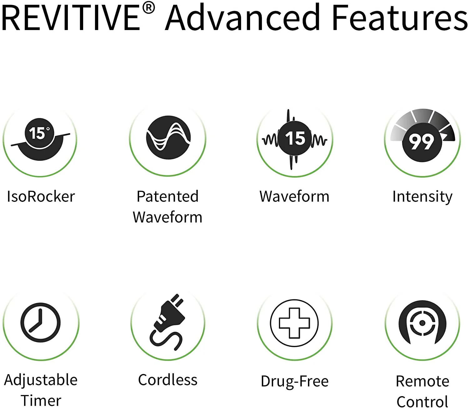 • CLINICALLY TESTED PATENTED TECHNOLOGY TO IMPROVE CIRCULATION: REVITIVE uses ELECTRICAL MUSCLE STIMULATION (EMS) combined with our patented ISORocker to increase oxygen-rich blood to your feet and legs. The REVITIVE Advanced Circulation Booster has also been cleared by the FDA to relieve leg aches and foot pains.
