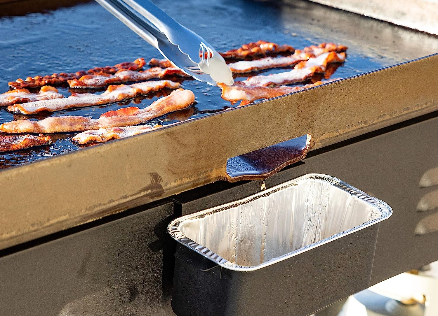 - INNOVATIVE GREASE MANAGEMENT SYSTEM: If you plan on cooking bacon or any other juicy meat. clean up can be tedious. Luckily. our flat top griddle features a drip tray that catches all the mess and makes after cooking clean up a breeze.
