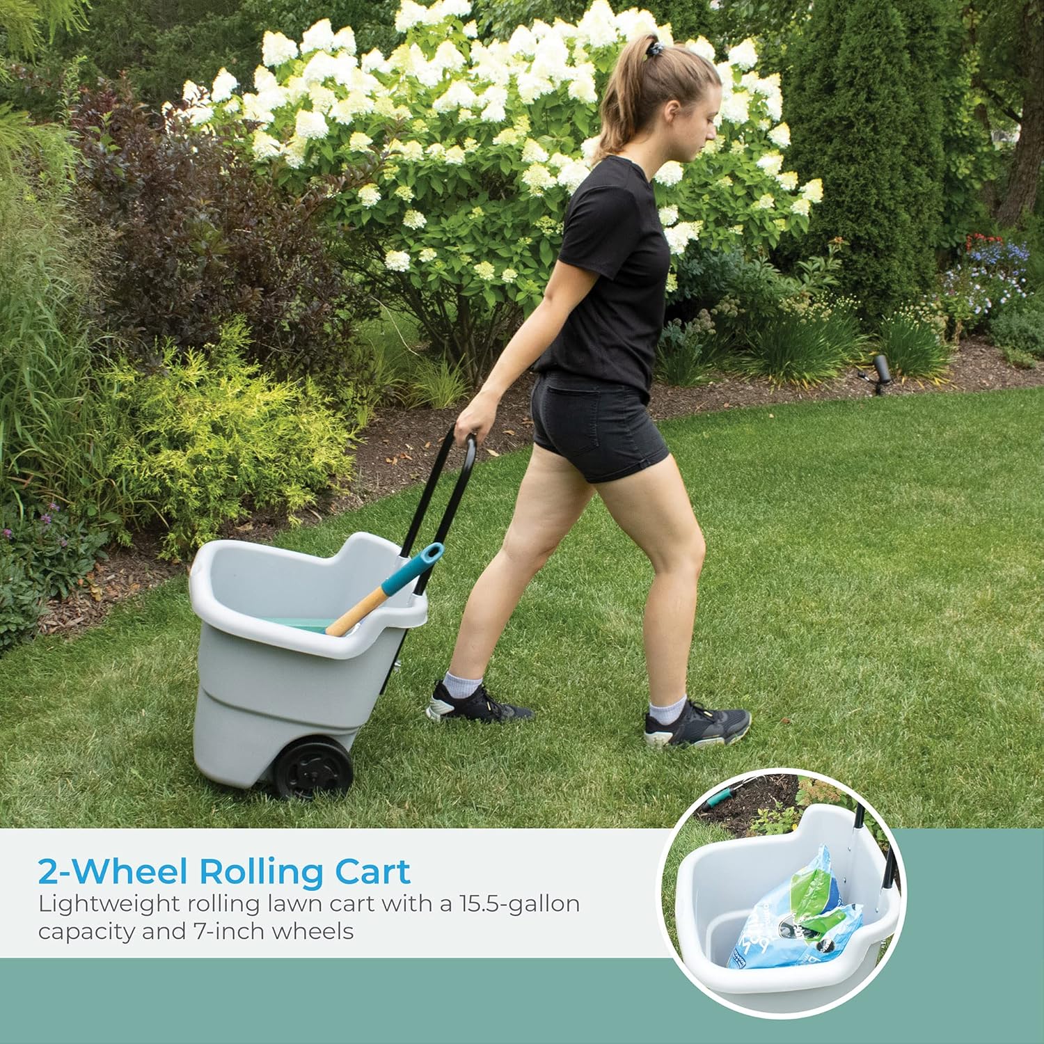 Upgrade your garden equipment with the Resin 15.5 Gallon Multi-Purpose Cart with Wheels. This compact and sturdy cart is designed for easy portability and efficient use without occupying too much space.